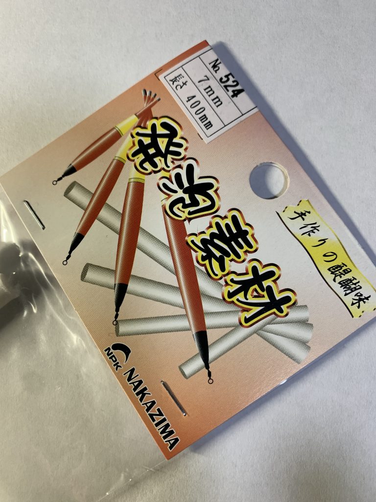 市販の浮きでは好みのハリやサルカンとの調整ができず センター穴あき発砲素材をカッターナイフで切断し制作します