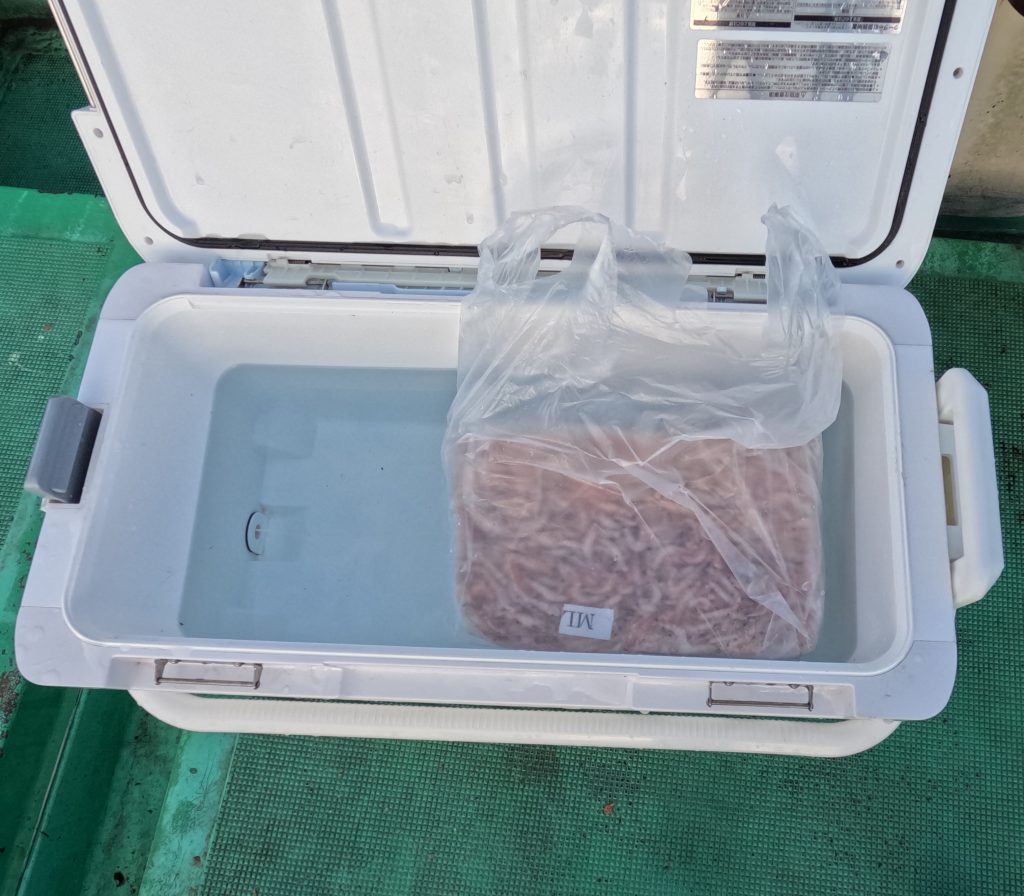 撒き餌はオキアミのみを使用します 配合エサやアミエビは使用しません