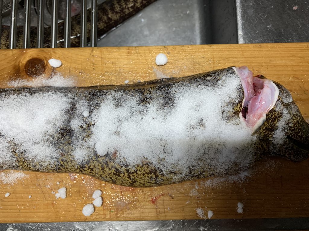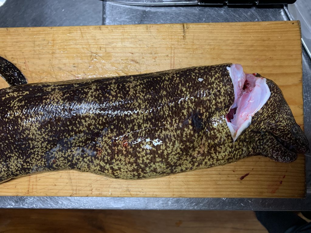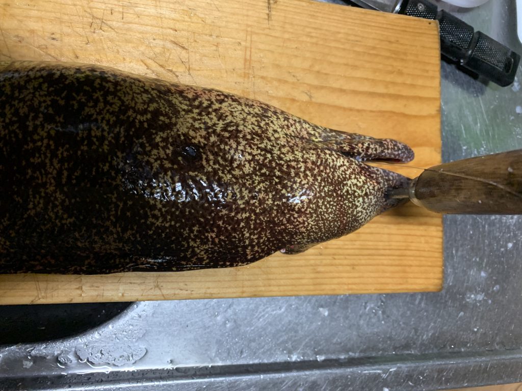 ウツボは海水氷に入れるとおとなしくなります