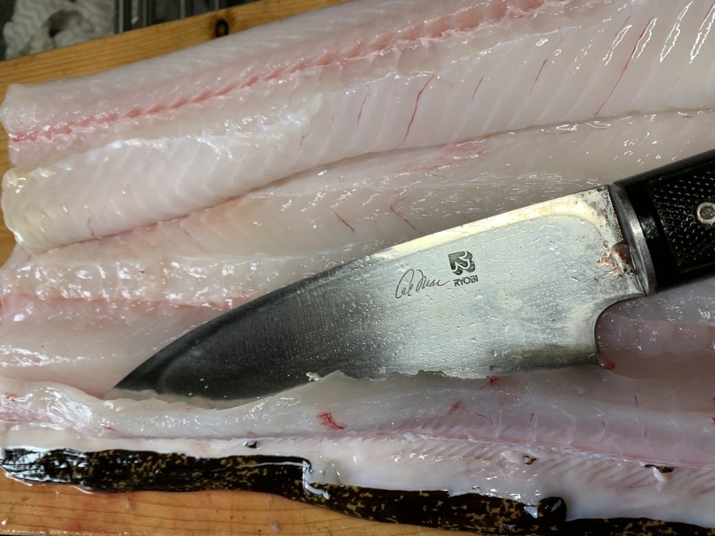 背びれに沿って包丁を入れます